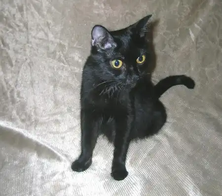 Черная кошечка принесет счастье в ваш дом. Была найдена в подсобке одного из ЖЭКов. Сейчас кошка осмотрена ветеринаром и полностью здорова, стерилизована и к лотку приучена. Возраст 2 года.