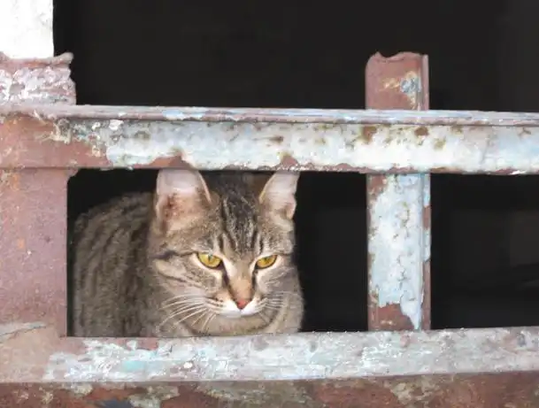 Не знаю,какое время там живут эти кошачьи, за качество фото прошу прощения, т.к. они пока были сделаны чтобы видеть зрительно наличие кошки.