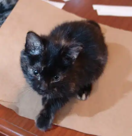 Сегодня в районе Киномира нашёлся маленький пушистый, чёрный с рыженькими пятнышками котёнок. Возраст 1,5 - 2 месяца, очень шустрый и невероятно ласковый. Кот. Если кто-то узнал своего пропавшего любимца или просто захотел взять это пушистое чудо себе - обращайтесь по телефону 52-79-50 (днём) или 68-36-22 (вечером).
