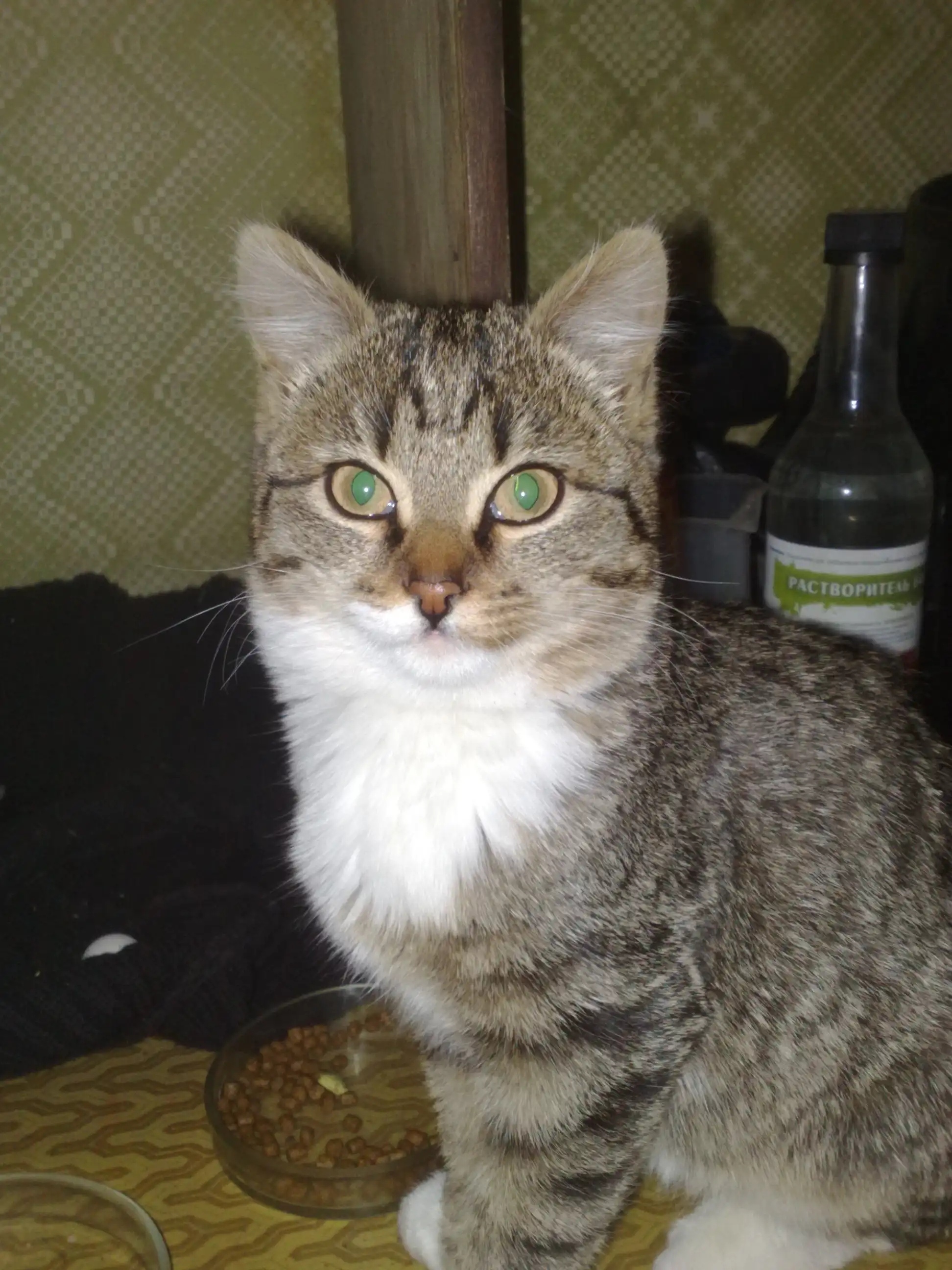Несколько дней назад кто-то подкинул в подъезд маленькую киску.Мы не смогли оставить маленькую красавицу в подъезде.