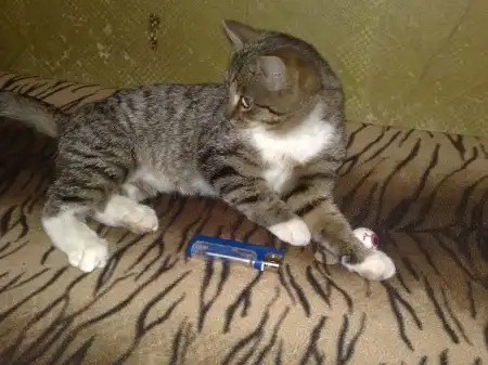 Теперь о кисе.Кису зовут Родинка, т.к. на подушечках передних лап имеются черные родинки.Киса игривая, общительная, громко мурлычит.От глистов и блох избавлена, хорошо ходит в лоток,ест все, даже чипсы.Так же киа обладает особыми лечебными свойствами( на лбу - буква "М", а "М"-значит медик) Ей около 3-ех месяцев.