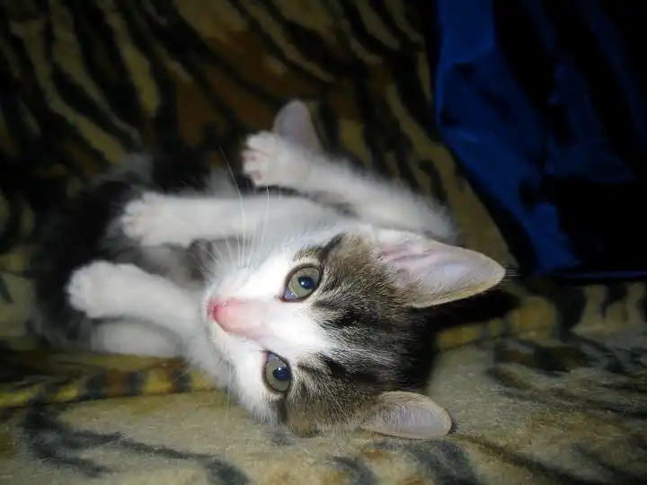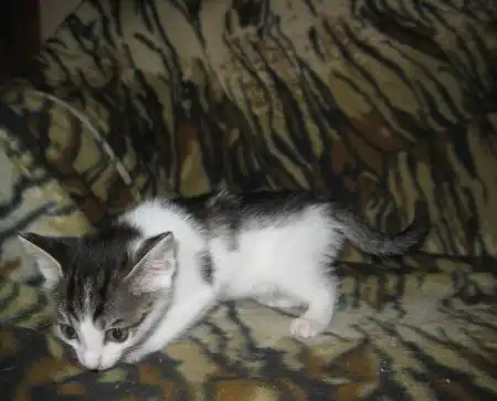 Окрас интересный. Белая с графитово-полосатыми пятнами, за что и получила кличку.