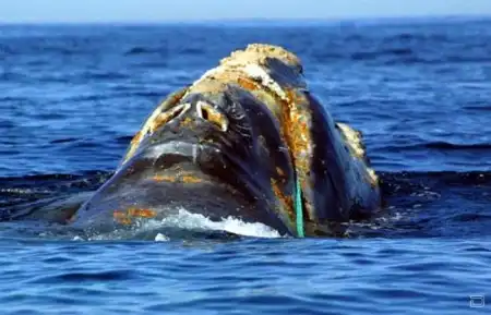 Североатлантический кит – один из самых подверженных опасности вымирания китов. Так как в теплых водах содержится все меньше планктона, от которого зависит кит, количество пищи также стало серьезной причиной повышенной смертности этого вида. На данный момент в мире существует всего 300-350 особей, и надежд на возрождение популяции мало. (EPA)