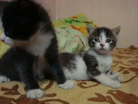 Мальчик: чёрный с белыми пятнами, (немного шугливый)