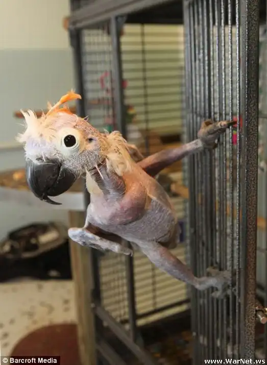 Причина такого облысения, заболевание "Beacon Feather", которое заключается в угнетении вирусом птичьего иммунитета, так же одним из побочных эффектов является безудержное желание птицы избавиться от всех перьев, которые становятся для неё очень большим раздражителем.