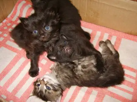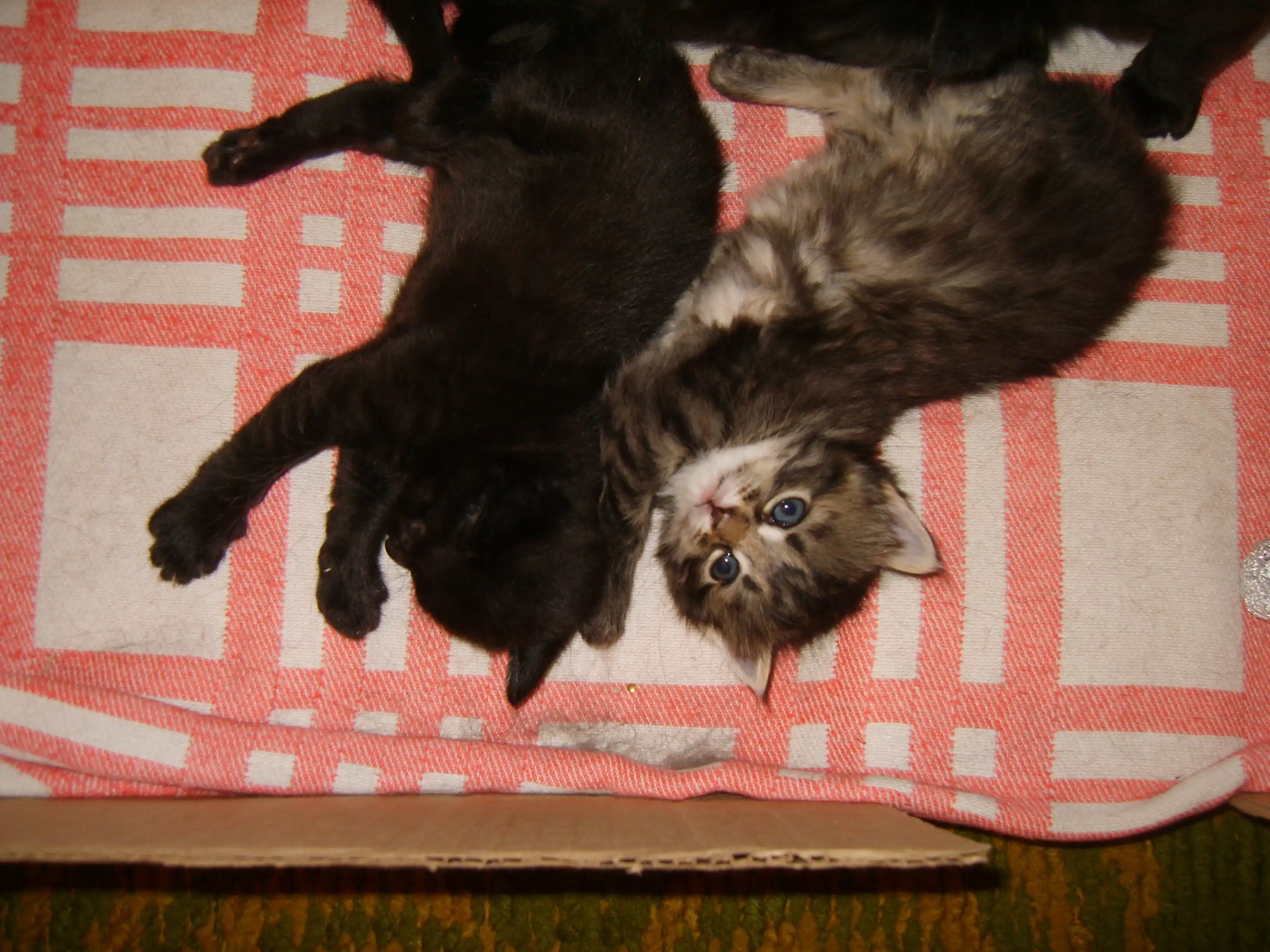 Где-то в начале ноября на свет появились очаровательные котята. Красивый, крупный папа и умная, симпотичная серая мама. Уже второй месяц с глазу на глаз - наскучили они друг другу хуже горькой редьки. Захотелось им накануне Нового года чего-то нового. Тем более - год Тигра... Но на улице холодно, и самостоятельно посмотреть что там, снаружи творится не выйдет. Охотно поселятся непременно в хорошей семье, желательно с детьми. У же всё знают и умеют. Очень любят играть, бегать и спать в теплом месте. Понимают и любят ласку. Обещают быть достаточно крупными, очень пушистыми и красивыми.