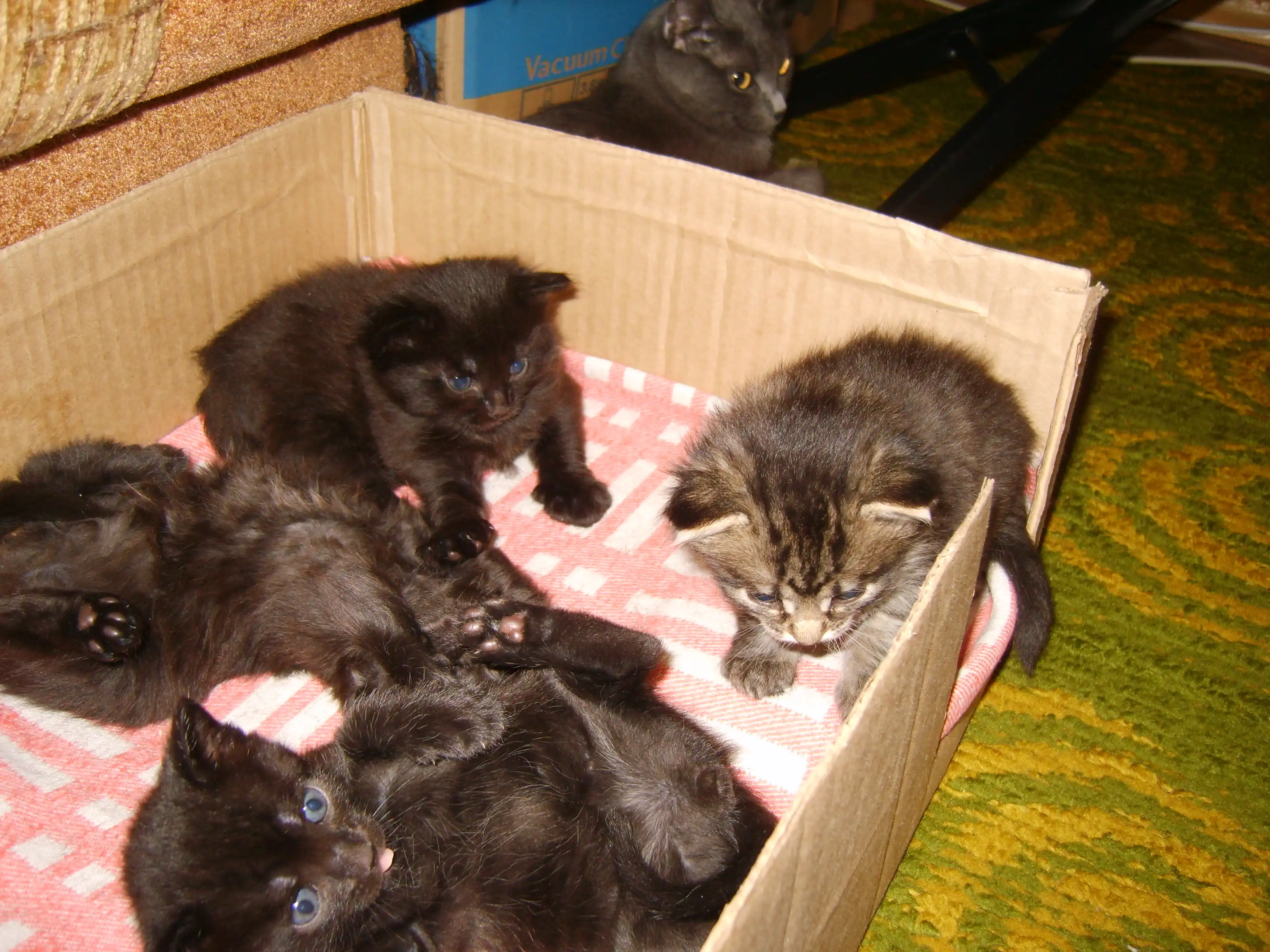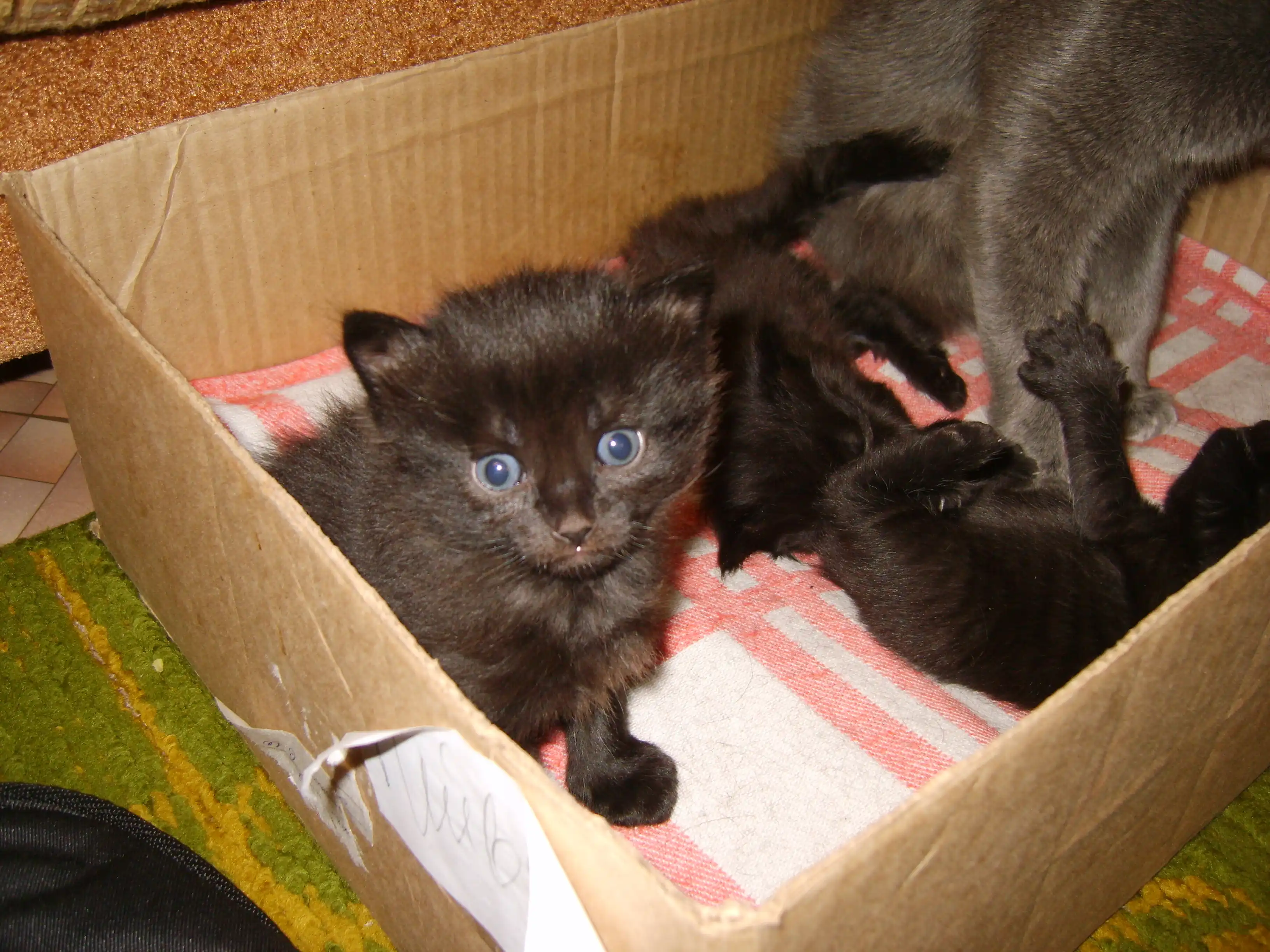 P.S.: На момент публикации поста гладкошёрстный кот уже нашел своих хозяев. Они в нём души не чают. Так что остались пушистые черные брат с сестрой и очаровательная полосатая девочка.