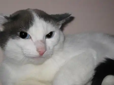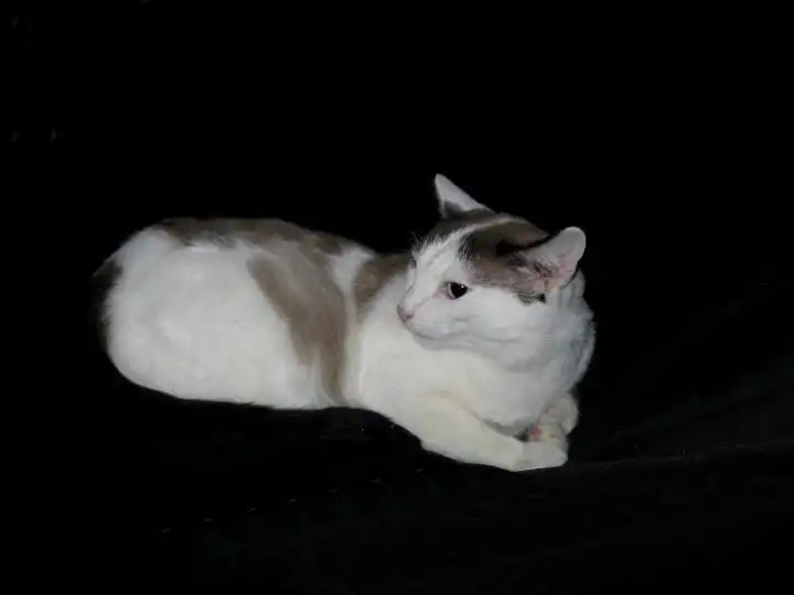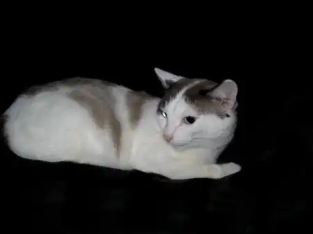 Зайчик - котик очень необычного окраса, белый с коричневыми и черными пятнами, с черным хвостиком. Его мама - колорпойнтовая кошка. У Зайчика от предков-тайцев длинное тело, большие уши и красивые ярко-голубые глаза. Зайчика вместе с его братом бросили, когда переезжали из дома под снос. Котики были спасены дедушкой, соседом хозяев. Зайчику 2 года, это очень нежный, ласковый. даже робкий котик, скорее всего, он встречался с немногими людьми, контактировал только с хозяевами, поэтому боится посторонних. Пользуется лотком, переведен на сухой корм. Зайчик ищет доброго, терпеливого хозяина. Кастрирован.