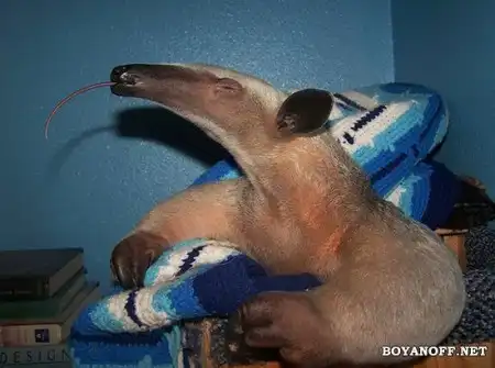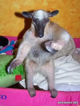 Этого красавца, хозяева кормят конечно же муравьями, а одевают как человека. Он выглядит очень необычно.