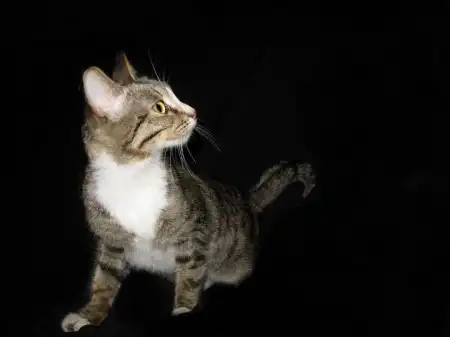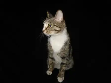 Магнолия - полосатая кошечка, ей месяцев 7-8. Найдена в подвале на рынке. На шее у нее белое пятно, как цветок, а один лепесток оказался на носике. Кошечка ласковая, нежная, послушная. но очень страдает, если на нее не обращают внимания. Весь день бы гладилась и урчала в ответ на ласку. Других животных не любит, хочет быть единственной и любимой у своих хозяев. Лотком пользуется, питается сухим кормом. Стерилизована.