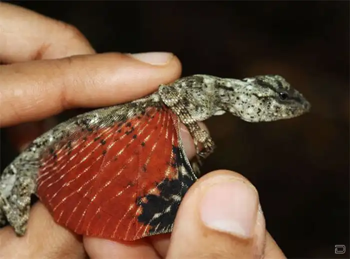 Летучий дракон - эта небольшая ящерица рода агамовых получила свое название за необычную для