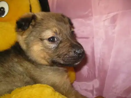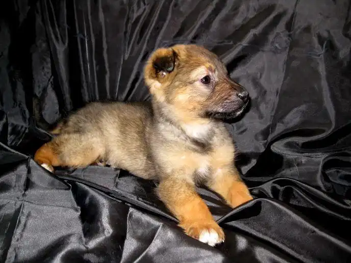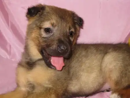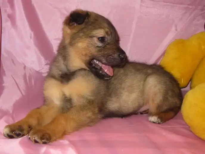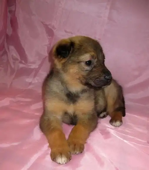 Ей около 1,5 мес. Рост будет средним. (около 45-50 см в холке).