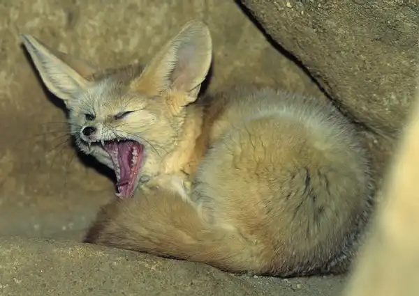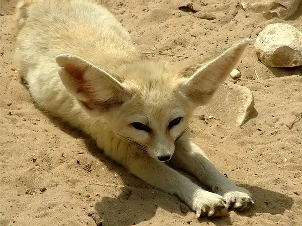Фенек (fennecus zerda) — самая маленькая африканская лисичка. Обладает непропорционально большими ушами, предохраняющими ее от перегрева. Распространена в Северной Африке, на Синайском и Аравийском полуостровах. Обитает в песчаных пустынях. Для убежища использует норы. Питается мелкими грызунами, птицами и их яйцами, ящерицами, насекомыми, а также растительной пищей. Жаркие дни проводит в норах, которые выкапывает самостоятельно. Активна ночью. Фенек ловко охотится, в том числе на ядовитых змей, в большом количестве употребляет в пищу саранчу. В зоопарках мира этот вид представлен мало и в неволе размножается очень редко.
