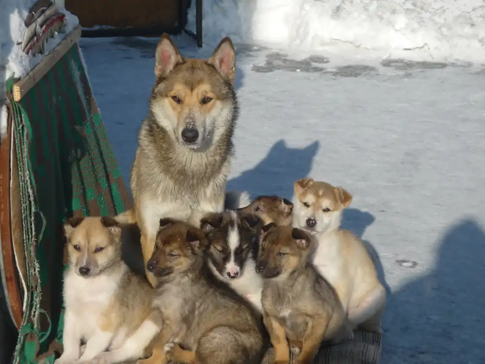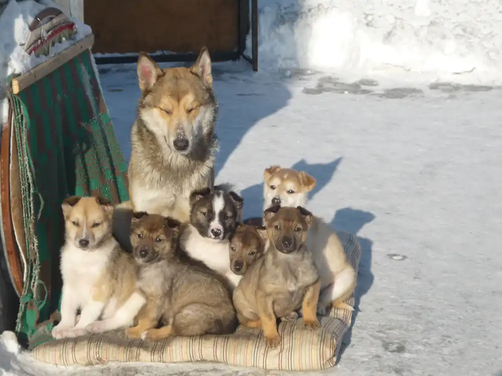 Щенки роделись 6 декабря, адаптированны к морозу. 2 мальчика и 3 девочки.