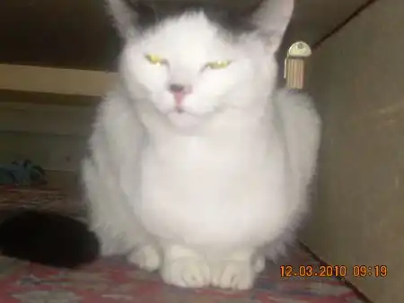 Кошечка, у неё подмёрзли ушки, она очень доброжелательна, не боится людей. Очень красивые зелёные глаза. Кушает всё что дают, похоже, что была домашней.
