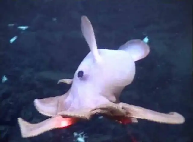 Что за зверь: Маленький и своеобразный глубоководный осьминог, представитель головоногих моллюсков.