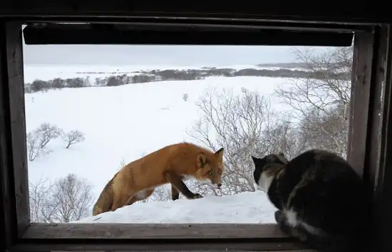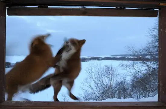 У Рыськи была привычка будить меня за час до восхода солнца. Каждое погожее утро мы первыми в России встречали восход солнца над океаном. Я топил буржуйку, варил кофе, первый месяц жарил яичницу на сале; а потом, когда кончились яйца, пек оладьи. Запах сала был наркотическим для местных заповедных лис, десятки поколений которых не знают, что такое охота на них. По утрам они заранее приходили к избушке, чтобы насладиться вкусным запахом. Они даже боролись за право стоять поближе к окну избушки, чтобы не только нюхать, но и видеть сало!