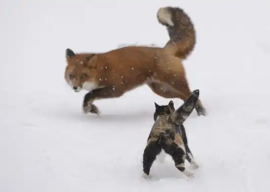Вот тут-то Рыська и показала свой характер. Сама она, избалованная кошачьими кормами, не ела ни сала, ни тушенки, ни задавленных ею полевок и землероек - всю свою добычу, до последнего хвостика, она с гордым видом приносила мне для отчета. Но чтобы лисы нюхали хозяйское сало!!! Такой наглости и беспринципности Рыська им позволить не могла!