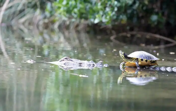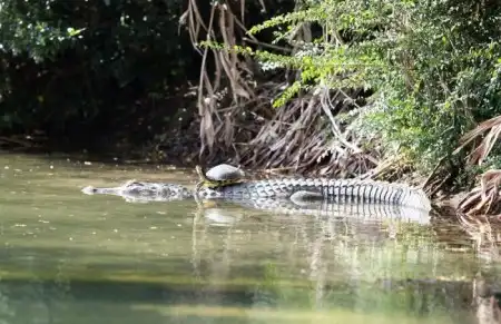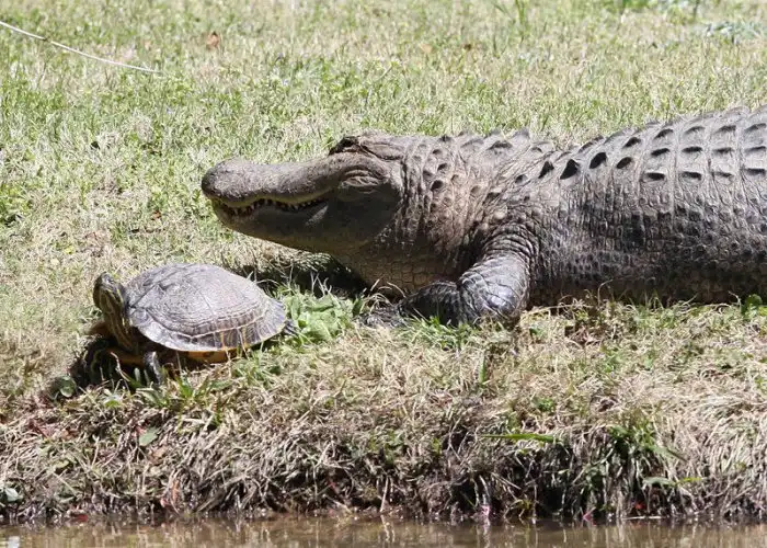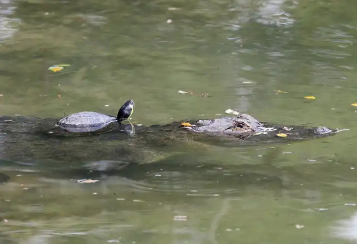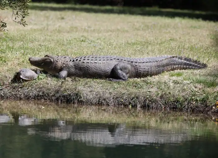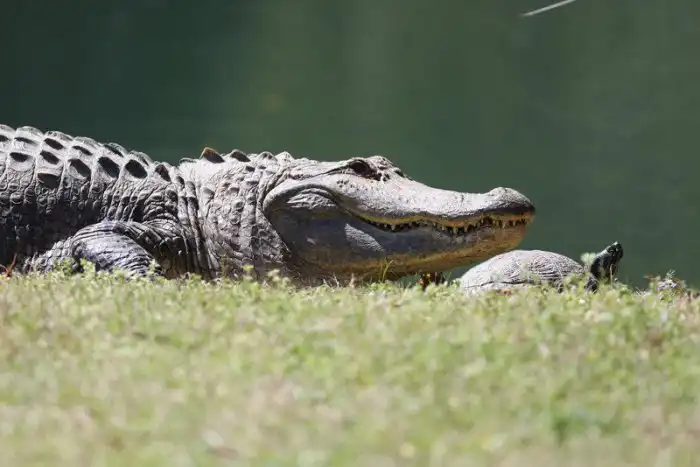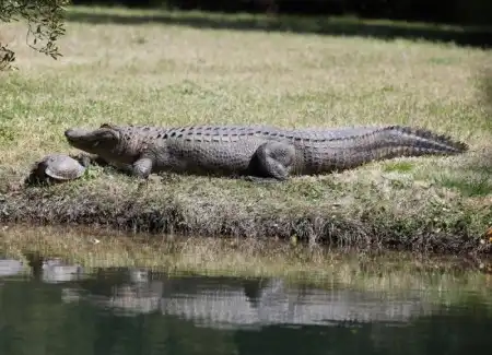 Аллигатора зовут Georgia, ему 9 лет. 15-и летнюю черепаху зовут Myrtle, а и живут они в штате Южная Каролина.