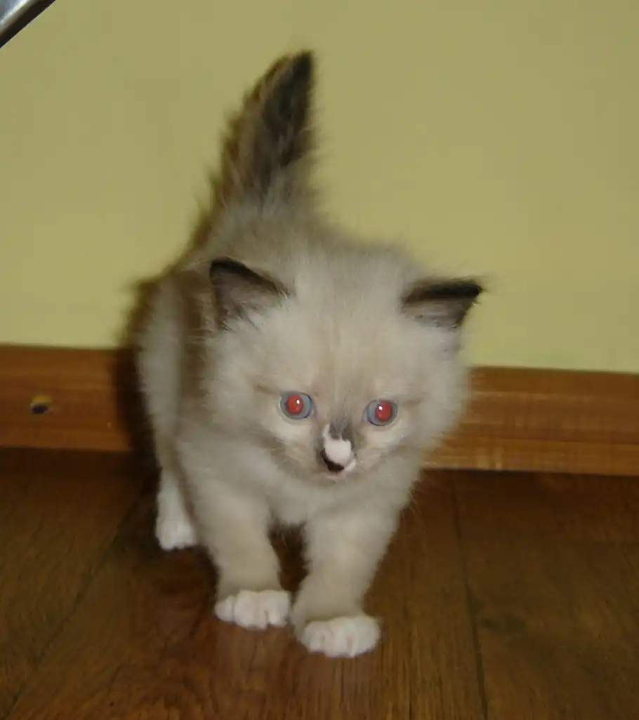 Балу - спокойный мальчик, пушистый, окрас - похожий на сиамса: