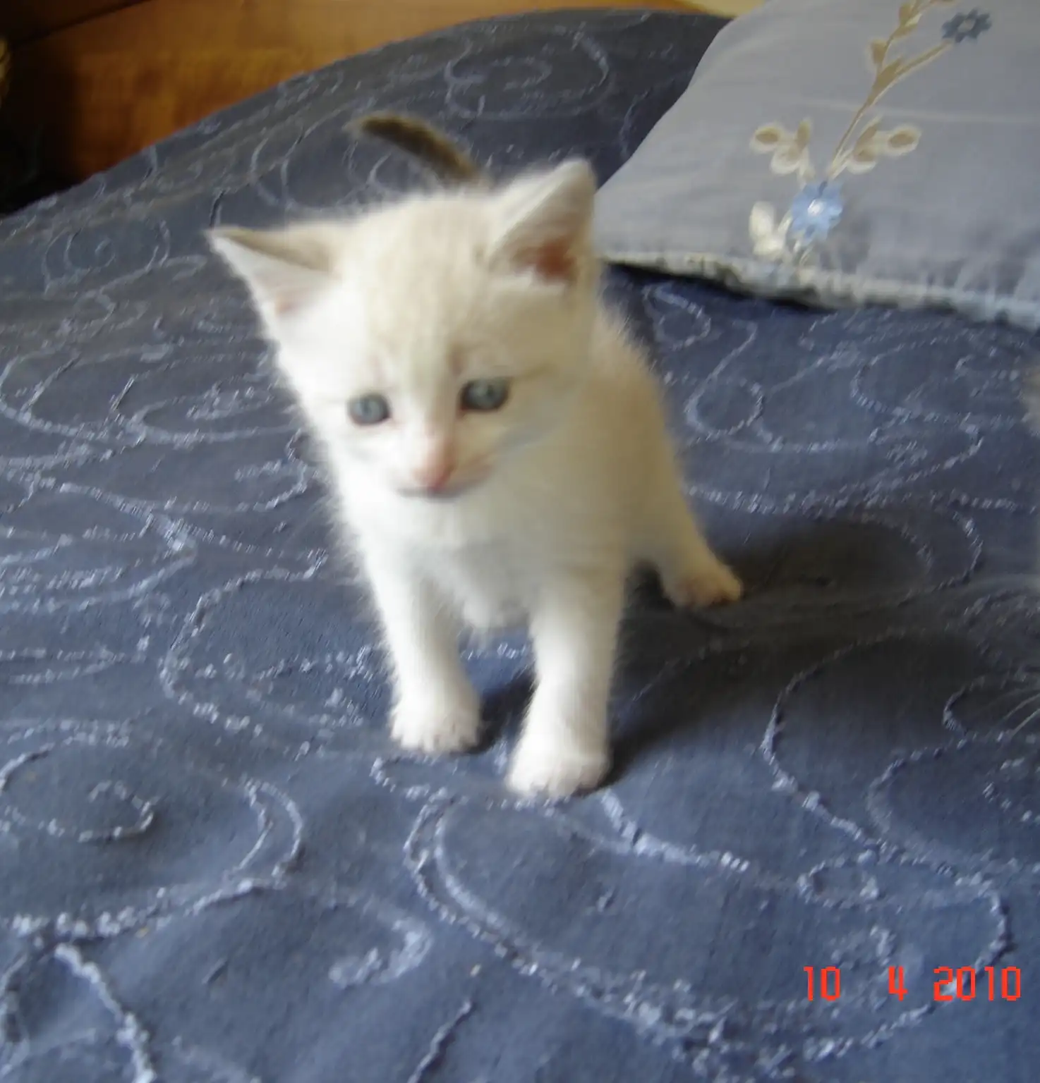 Белоснежка - гладкошерстная белая кошечка со светло-коричневыми полосками (будет похожа на белого тигренка):