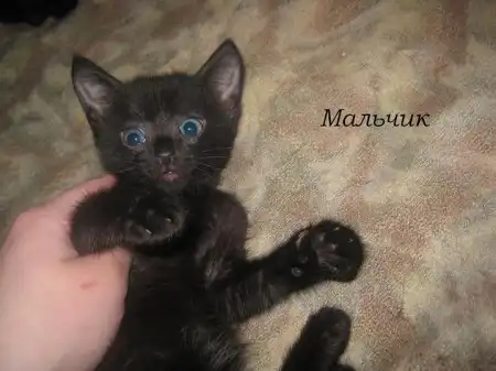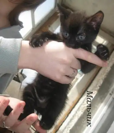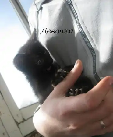 Девочка черная с белым галстучком и кисточкой на хвостике. Она игривая и даже взрывная чуточку. испугается - мгновенно показывает это. Но так же очень верит людям. Идут на ручки оба. Не хотят быть одни, мяукают.