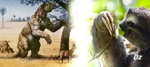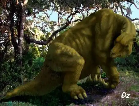 Мегатерии (Megatherium, от др. греч. «большой зверь») - вымерший род гигантских ленивцев, существовавший в плиоцене и плейстоцене от 2 млн. до 8000 лет назад на территории Южной и отчасти Северной Америки. Мегатерий был гигантским травоядным, превосходившим размерами африканского слона - он достигал 6 метров в длину. Гигант частенько вставал на задние лапы и в результате становился еще в два раза выше. Свой мощный хвост он мог использовать как дополнительную опору. На лапах у него были гигантские когти (до 17 см), ими этот гигантский монстр мог запугать кого угодно. Строение передних лап мегатерия было схоже с таковым у хищных млекопитающих и обеспечивало скорость удара. Поэтому предполагается, что он применял свои передние лапы и в сражении.