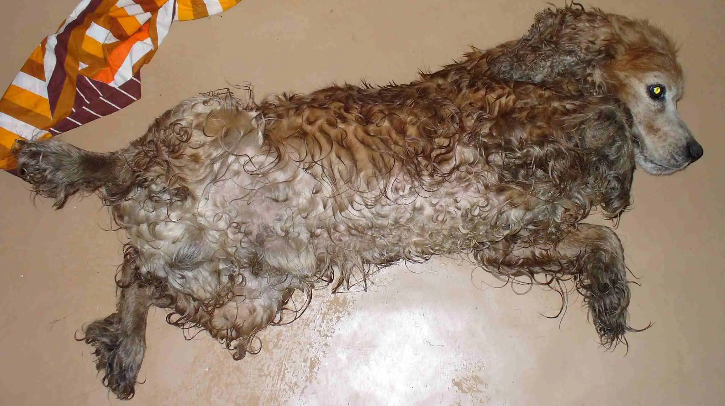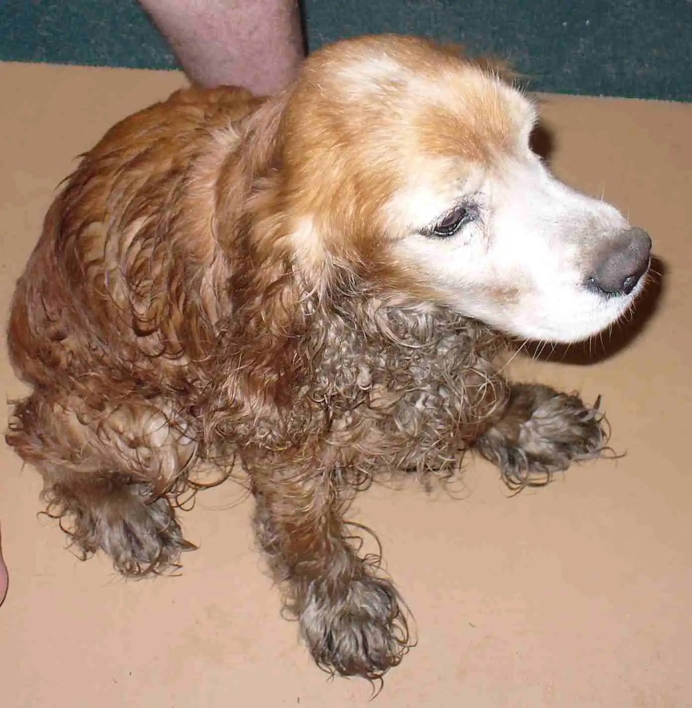 Песочного окраса, спокойный, похоже что потерялся недавно.