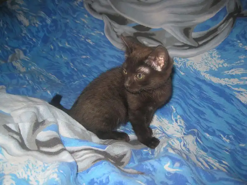 Малышку тоже нашли в подъезде, 2 мес. девочка. У ней очень интересный окрас - кажется, что черный, но на самом деле какой то пепельно-рыже-коричневый и белые пятнышки. Даже сама шерстка на ощупь необычная, иная. Девочка знает лоток, имеет хороший аппетит, ласкова,здорова, весела и ждет того, кто её никогда не бросит больше... Отдается на условии дальнейшей стерилизации. со скидкой поможем. 8952 894 96 94