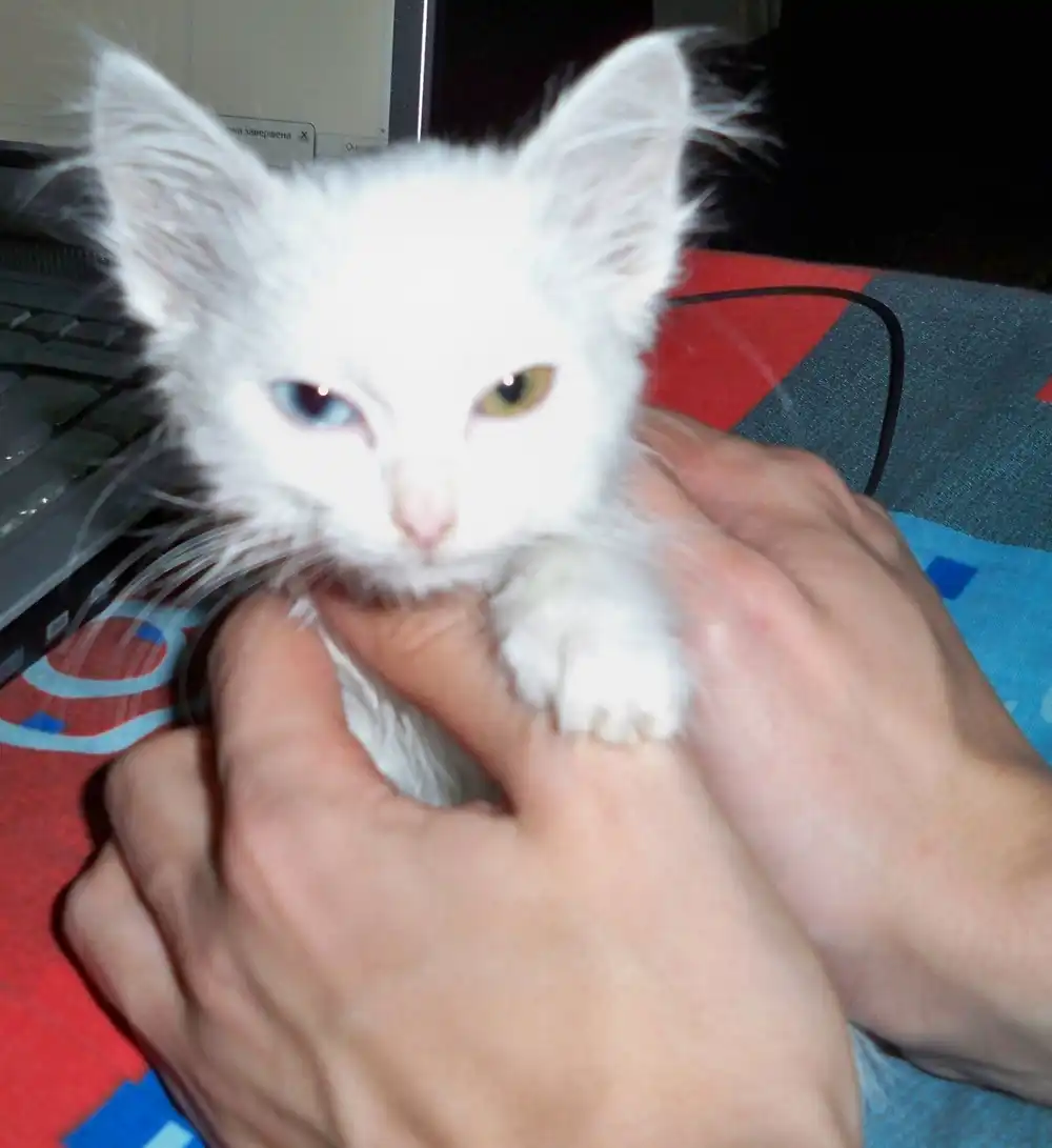 Вчера вечером пошли в магазин, на встречу шли две девочки - сразу их заметила, так как в руках было что-то - оказалось маленький котёнок. Минут через пятнадцать мы уже возвращались из магазина, услышали писк и разглядели при свете фонарей маленький комочек бежавший к дороге (видимо его специально несли выкидывать). Естественно подобрали, что ещё оставалось делать - он бы и ночи не прожил (собаки у нас стаями тут гуляют).