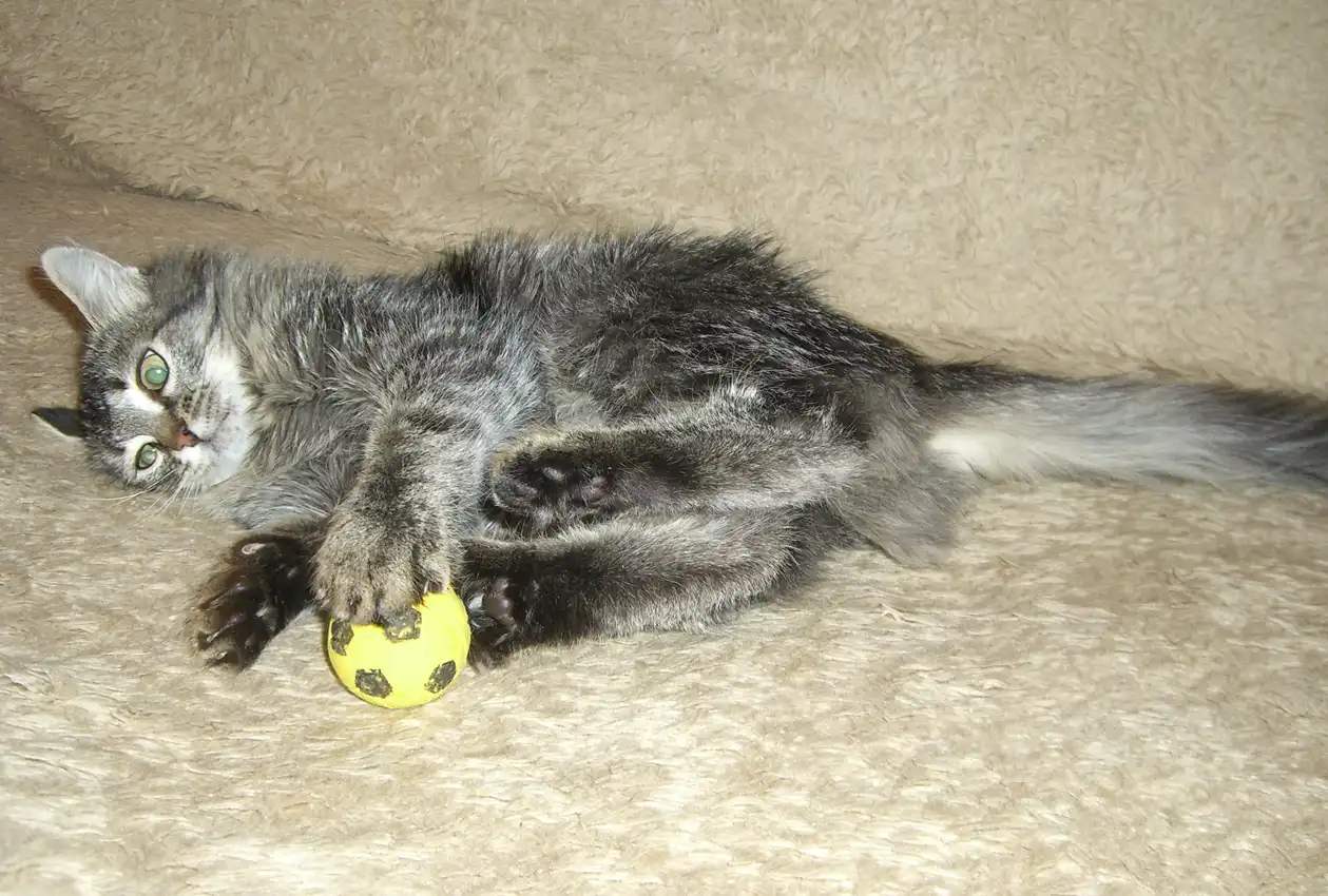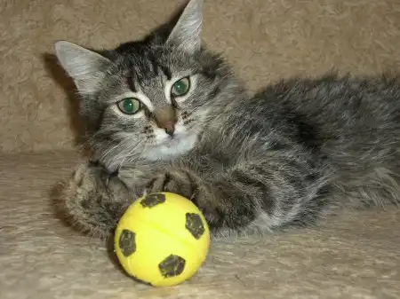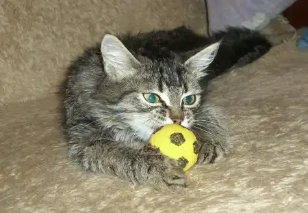 Когда не спит, играет. В еде кот не привередлив, ест почти все (от сырой картошки, до сухого корма). К туалету привык быстро.