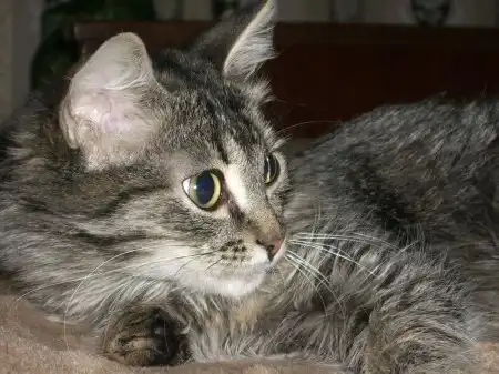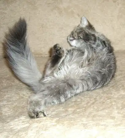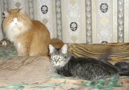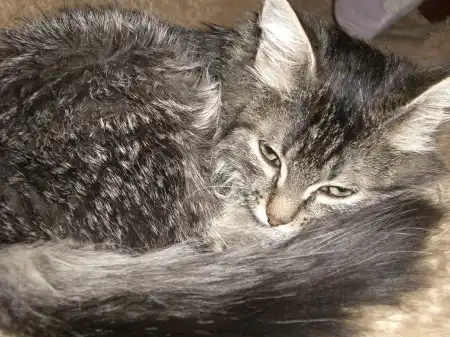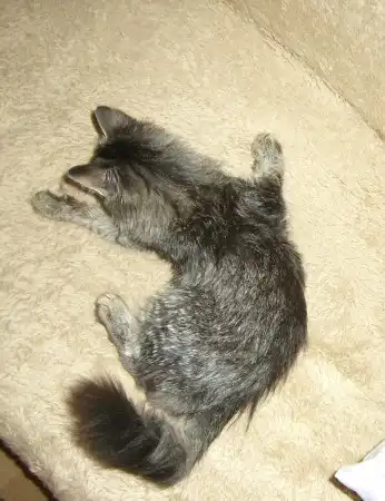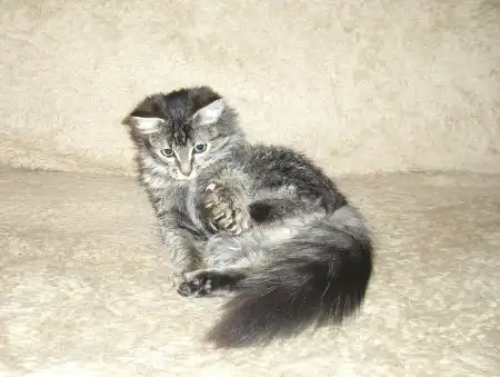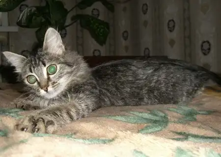 Котенку (это мальчик) около 3х месяцев, похож на помесь сибирского кота (так предположил ветеринар), чрезвычайно ласковый, нежный и ручной.