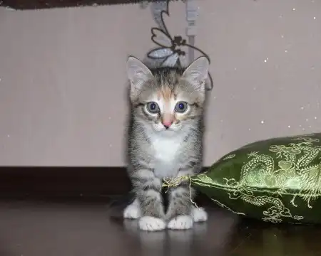 Любопытная кошечка, потомственная мышеловка в третьем поколении Анфиска (1 мес.) ищет любящих хозяев. Ест все, очень любит икру, щуку, творог, детское питание. Самостоятельная, очень игривая, ласковая, к туалету приучена. У себя оставить не можем, есть кот (ее прадедушка)