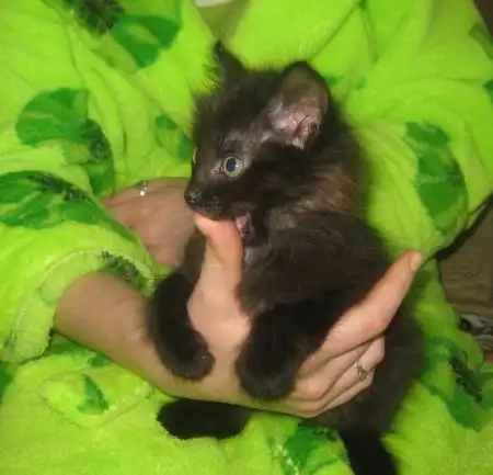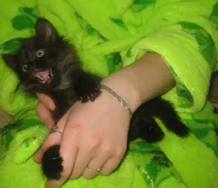 Котеночек один шел по трассе дороги, мимо ехали машины. Малыш кричал. Не описать, наверное, каково было его состояние. Котенок ручной, что говорит о контакте с людьми. Худенький и пыльный. Скитался не долго. Но был ооочень голоден. Пока шли до дома - он обхватил за шею и на ушко мурлыкал свою грустную историю...Малыш очень красивый. Морда немного вытянутая. Черный окрас отливает шоколадным. Кис игривый, смышленыш. Привычки и повадки изучаем.Лоток понял и принял. Молодец, малыш!