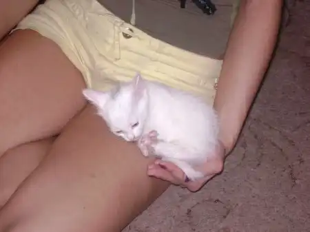 Отдадим в хорошие руки маленькую, беленькую кошечку,на макушке небольшое серое пятнышко. Кошечка была найдена на улице, отмыта и накормлена. К сожалению у себя оставить никак не получается, поскольку уже живет взрослая кошка. Малышка очень ласкова и игрива, довольно сообразительна и забавно мурлычит)))). На вид ей 1,5-2 месяца. Всех, кто хочет приютить малышку обращаться по телефону 8-906-955-4473 Ксения.