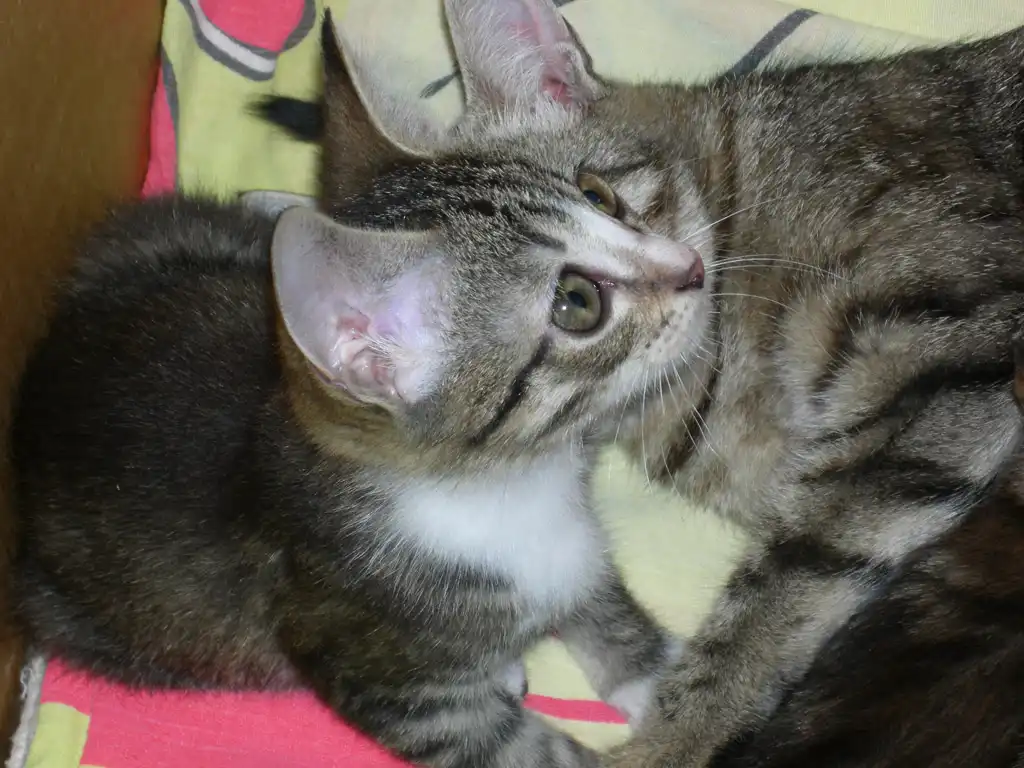 А вот и серо-полосатый герой! Очень примерный и воспитанный парень, исключительно пользуется лотком (на предпоследнем фото запечатлено доказательство). Весельчак и затейник, обладатель огромных, красивых глаз и почти заячьих ушек!