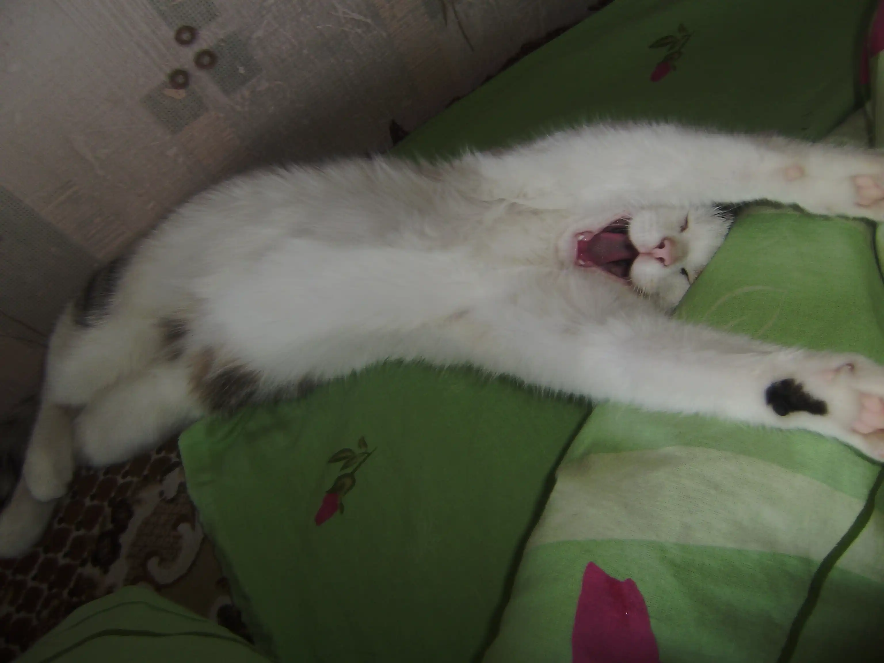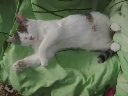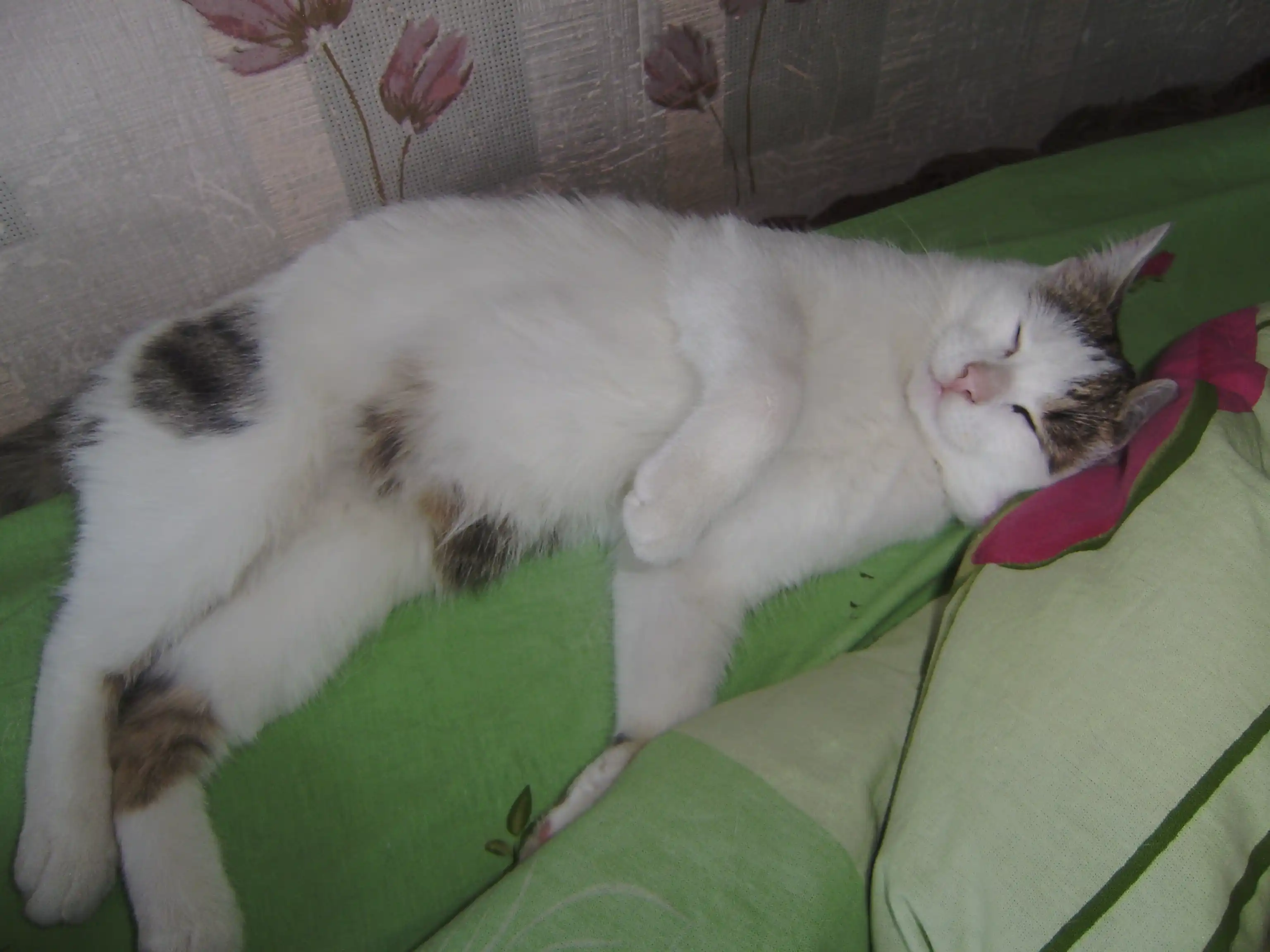 активная и ласковая кошечка, с отличным аппетитом)))... У себя ее