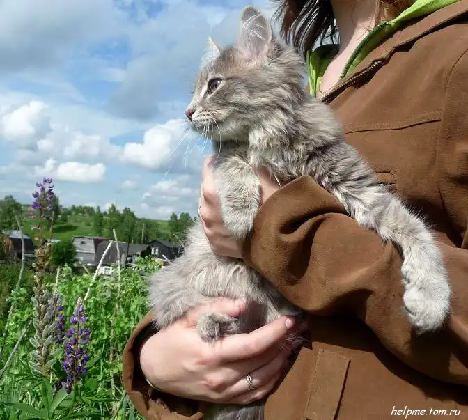 ОООЧЕНЬ пушистая девочка, мягонькая, ласковая. Идет на контакт легко. Знает дом, трется об ноги. На улице скиталась не долго, шерсть скатана чуть чуть, и киска немного пыльная была. Сейчас кошка приведена в порядок, расчесана, от возможных паразитов избавлена. Боится машин и другим животным не очень рада. Дома (не знаю с чем связано) начинает громко мяукать у двери. Наверное, поэтому и оказалась на улице. На вид я бы ей дала 5 мес. Очень красивый окрас. Серый, плавно переходящий в белый цвета, зеленые глаза и пышная шерсть, штанишки - придают этой даме потрясающе красивый вид! По повадкам и лотку пока ничего сказать не могу…