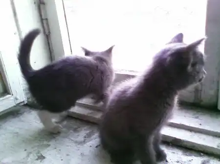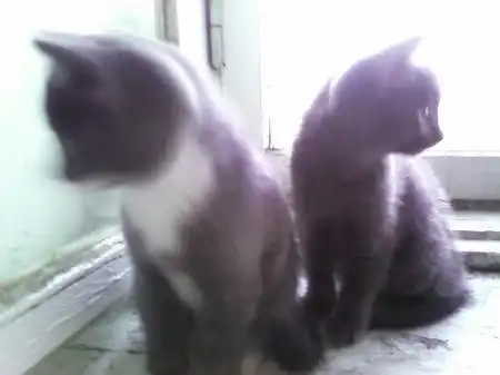 Подкинуты в подъезд двое котят (предположительно оба кота). Один полностью дымчатый, другой дымчатый с белыми лапками, мордочкой и грудкой. Первый более спокойный, второй - более игривый. Подкармливаю молоком и мягким Вискасом. К лотку возможно не приучены. Хотелось бы, чтобы откликнулись люди добросовестные, неспособные выкидывать животных по-ненадобности/плохому поведению.