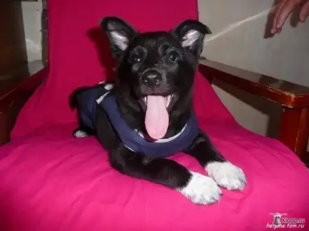 Черная-девочка, очень шустрая, родилась 15 мая, сделали операцию на грыжу 10 июля. очень игривая.