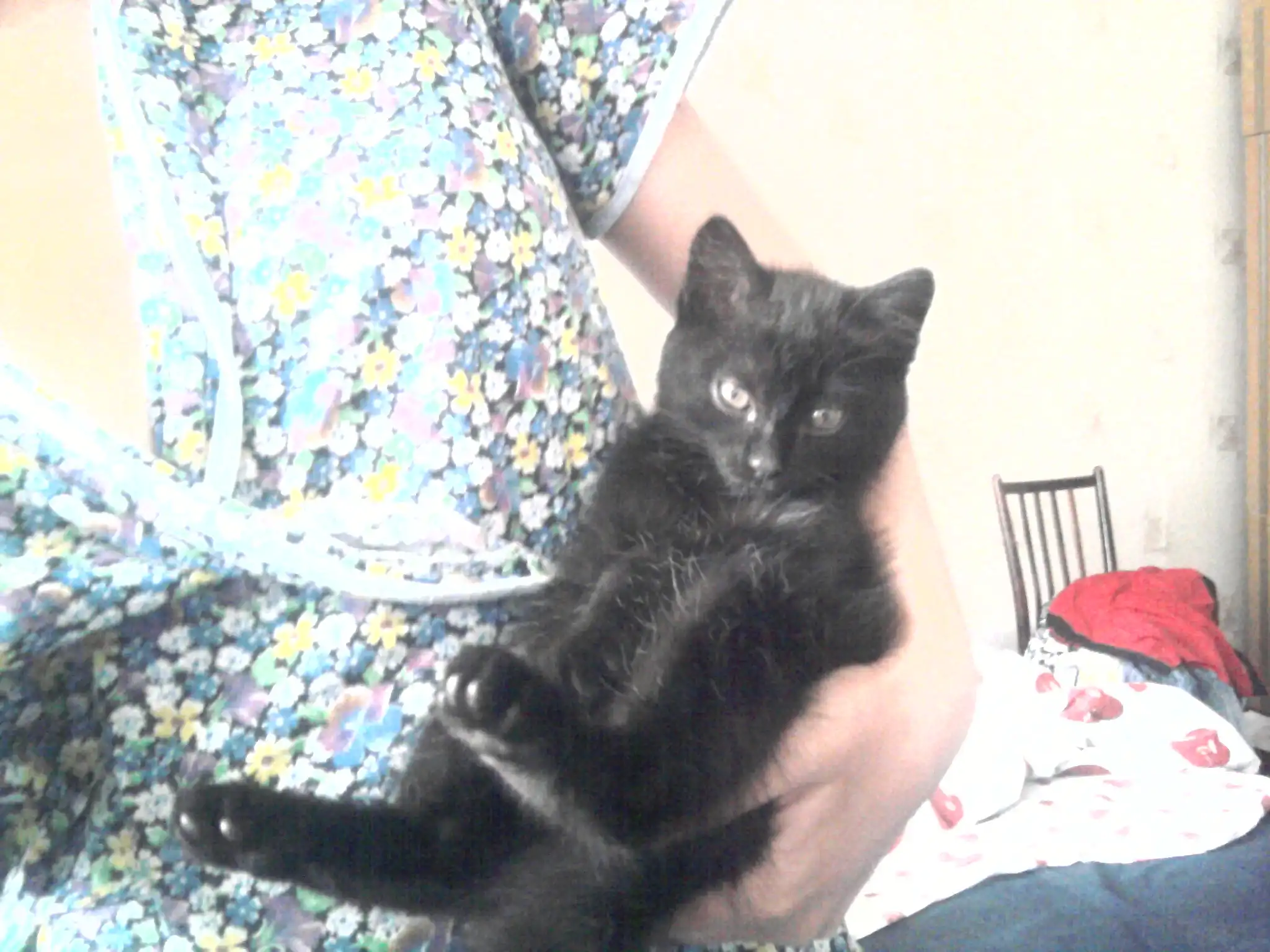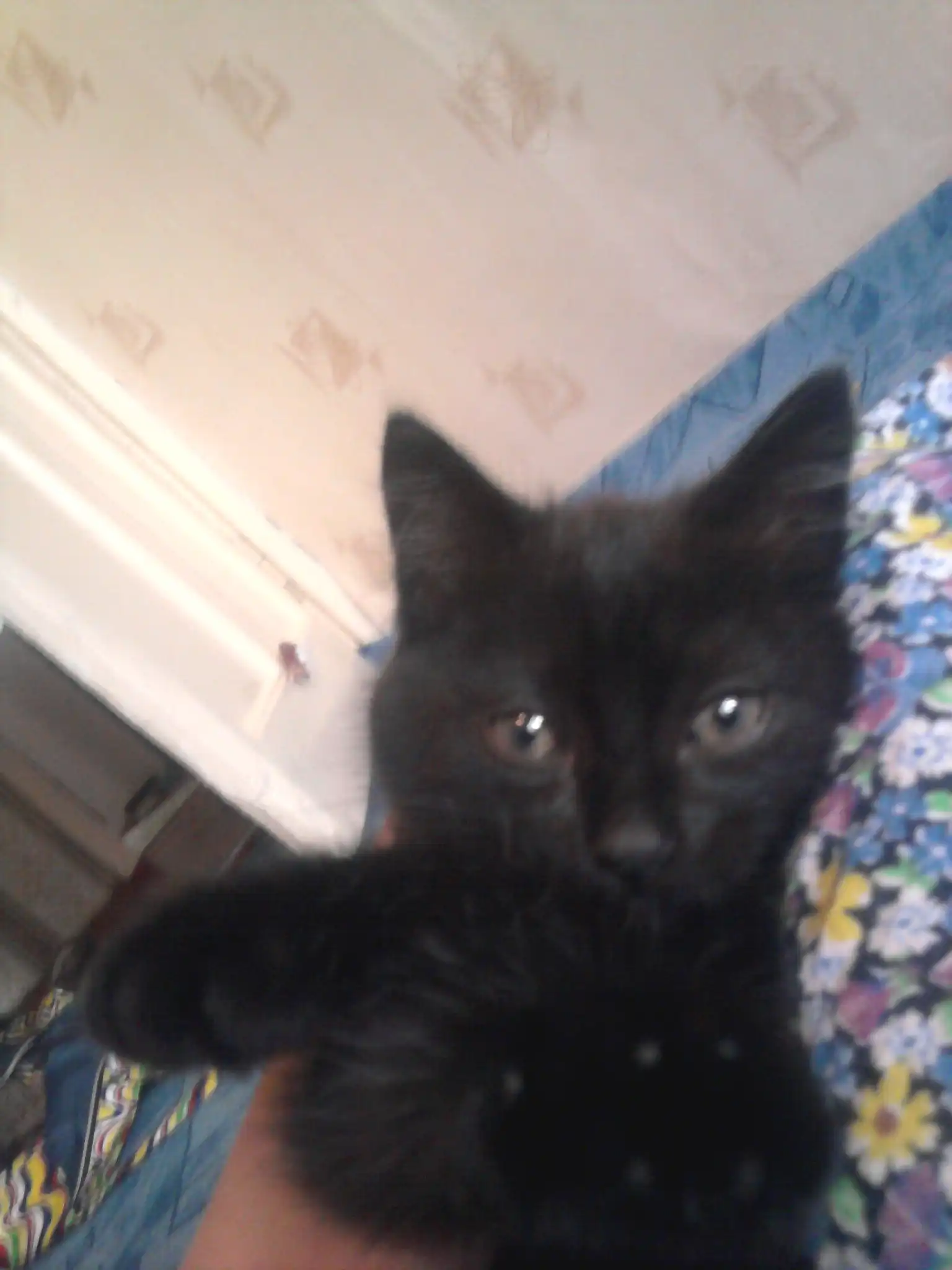 Подкинули в подъезд котенка, примерно 1.5-2 мес, черная девочка.