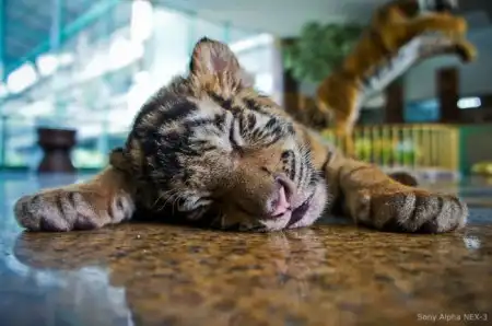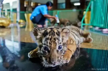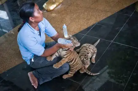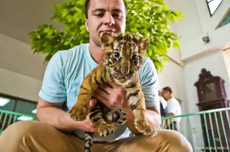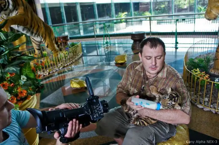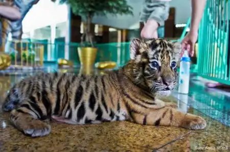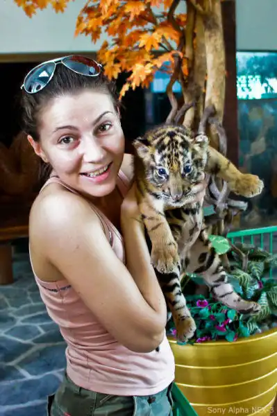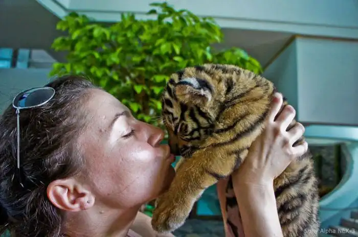 В этом зоопарке можно не только посмотреть, но и погладить, обнять настоящего тигра.