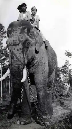 Американский солдат и местные дети катаются на слоне в Бирме во время Второй мировой. Военнослужащим часто встречались экзотические животные, типа обезьян, верблюдов и слонов. (AP)