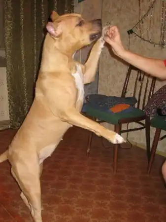 В данный момент есть сука стаффа, прекрасная рыжая девочка. Два года. Причина отдачи - развод