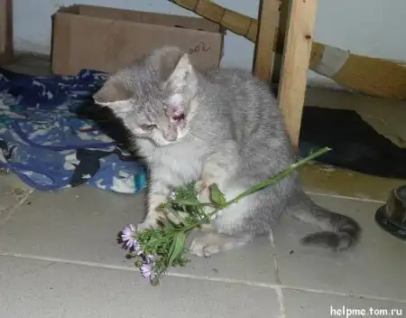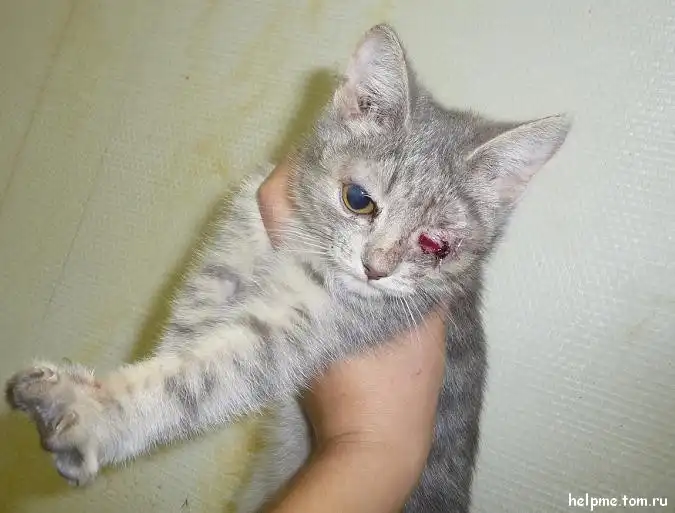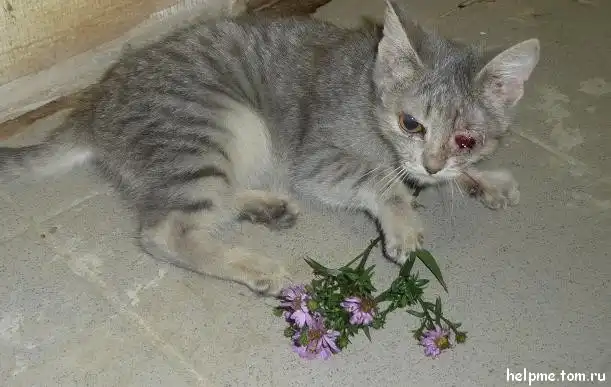 В субботу около клиники появилась женщина с котенком на руках, заглянула и вышла. Сначала на это не обратили внимания…но позже снаружи клиники врачи увидели того самого котенка. Совсем одного… и с глазиком наружу… Малышу сделали операцию в этот же день. Отличный котик (мальчик), ласковый очень. Не хочет оставаться один совсем… лезет на ручки, мяукает…зовет так, что немного уже охрип… Взяла ему цветочек, чтобы поиграть – он немного повеселился и принес мне его обратно… Очень уж ему снова хотелось на ручки. Малыш активный, игривый, веселый, очень душевный. У него очень красивая мордашка, добрая. Он не держит ни на кого обиды. Он живет настоящим моментом и сейчас ему больше всего хочется домой. Ч/з 10 дней (21. 09), когда снимут шов – он будет полностью готов к переезду к самому дорогому человеку на свете.