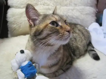 В районе кинотеатра "Октябрь" была найдена кошка тигрового окраса! На вид ухоженная, домашняя. Очень умная кошка с ясными, глубокими глазами, выражающими её состояние. Ходит строго в лоток, кушает как натуральный продукты, так и сухой корм. Светлана знает свой место, сидит себе там и никому не мешает. Она мечтает найти своего старого или нового хозяина.