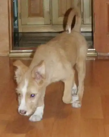 Очаровательная девочка-щенок персикового окраса ищет надежного хозяина и дом. Отличительной чертой внешности является наличие небольшой бородки и челочки, что говорит о возможном далеком её родстве с терьерами. Возраст около 4,5-5 месяцев. Вырастет относительно небольшой - около 40 см в холке.