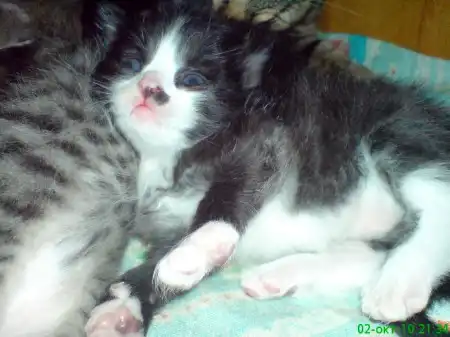 Котятам 1 мес., уже во всю играют! 1 девочка (черная с беленьким) и 4 мальчика!