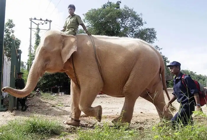 На северо-западе азиатской страны Мьянма было обнаружено редкое животное – слон-альбинос. По поверьям буддистов, он может принести удачу всему государству.