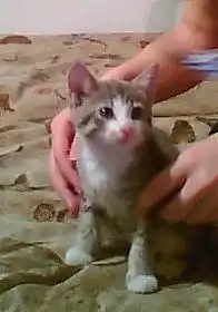 Вечером на улице бабушка несла его в простынке,предложила забрать,т.к котёнка ей подкинули,оставить себе не может,так он оказался у меня.